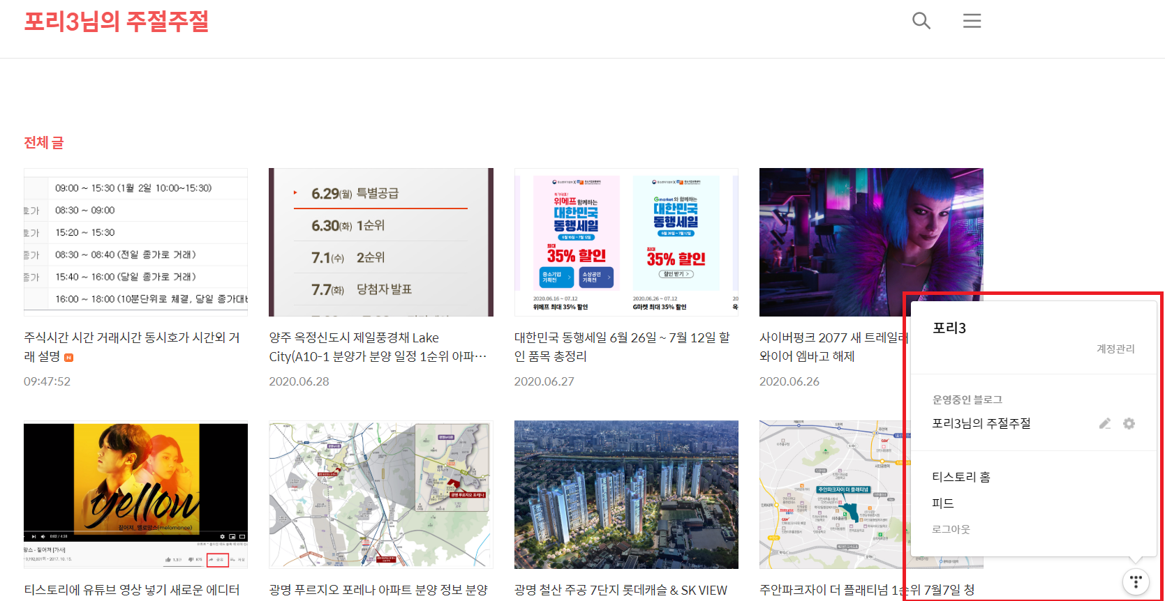 | 티스토리 카테고리의 다른 글 더 보기 (0) | 2020.06.30 |