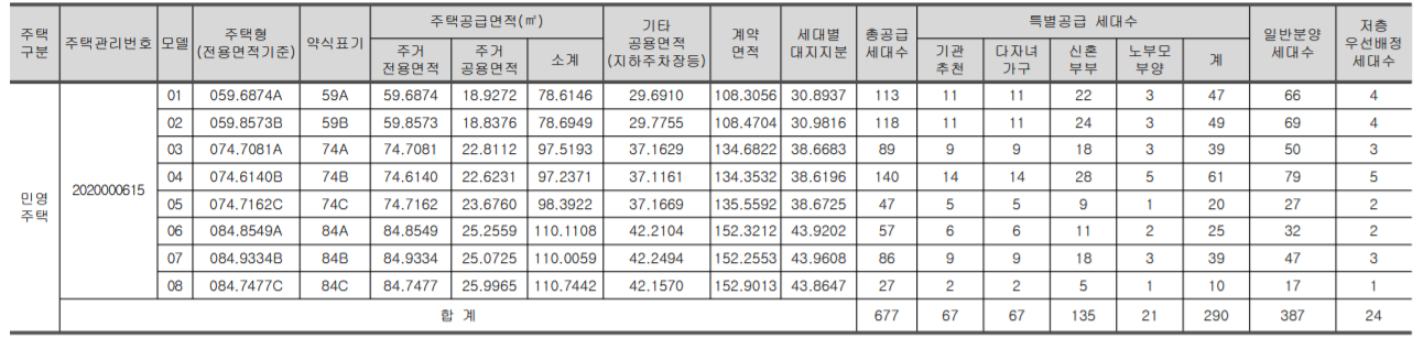 - 신종 코로나바이러스 감염증 확산 상황 및 정부 정책에 따라 당첨자의 견본주택 관람, 당첨자 서류제출 및 공급계약 일정은 변경될 수 있으며, 변경될 경우 개별 통보할 예정입니다.